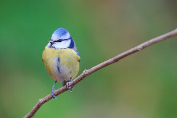 Blue Tit (Cyanistes caeruleus) perched on branch. Barcelona. Catalonia. Spain.