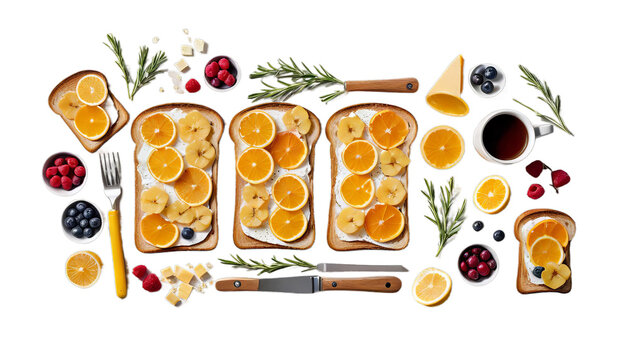 White bread slices with butter and raspberry jam on it, greens on wooden board, organic country sweet sandwich, homemade dessert. Copy space.