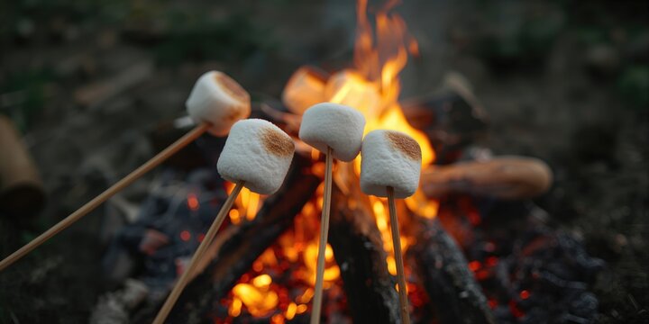 Roasting marshmallows over hot fire