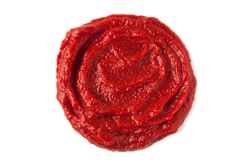 Ketchup, tomato sauce, isolated on a white background. Top view.