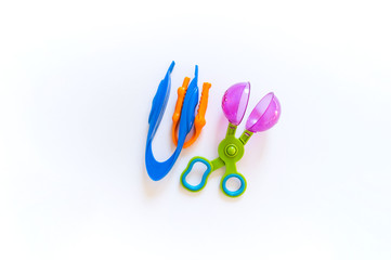Toy tool for experiments and experiments. Science for the child. Montessori system.