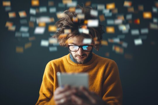 Digital Overload - Person Juggling Multiple Social Media Tabs, Addiction to Technology, Multitasking Distraction Concept