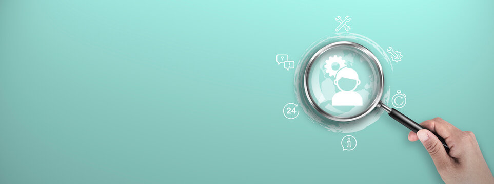 Technical support concept. Maintenance sign wrench and screwdriver tools. Tech issues fix service. Magnifier focus to Digital marketing icon.