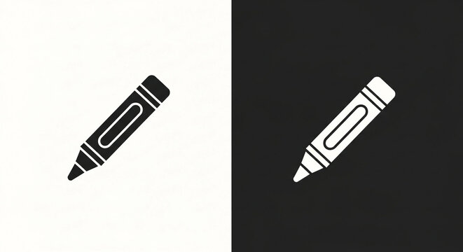 Simple Black and White Crayon Icon Illustration.