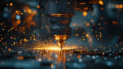 A detailed shot of a CNC machine cutting through metal, with sparks flying, capturing the intensity and accuracy of industrial equipment in operation