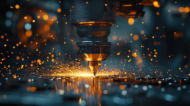 Precision Metalworking in Modern Factory with CNC Machine Sparks