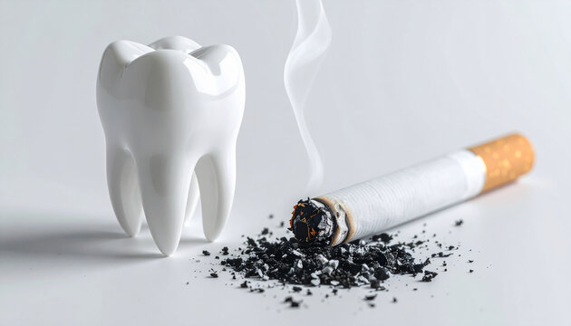 A dental tooth model rests on the sandy beach, waves gently lapping at its base during a golden sunset.