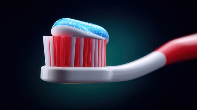 Fresh Start: A close-up view of a toothbrush, adorned with a vibrant burst of toothpaste, a symbol of oral hygiene, sets the stage for a daily routine.