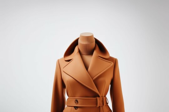 Classic beige trench coat isolated on white, double-breasted outerwear for women