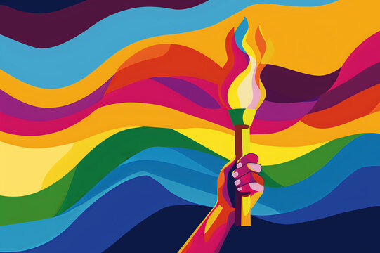 Olympic flame, torch in hand, art, poster, copyspace