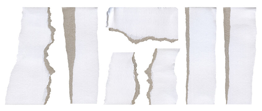 Pieces of torn paper. White paper with texture and brown tears.