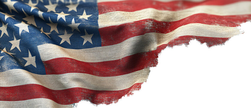 Worn and Torn American Flag CloseUp Photo with Faded Colors