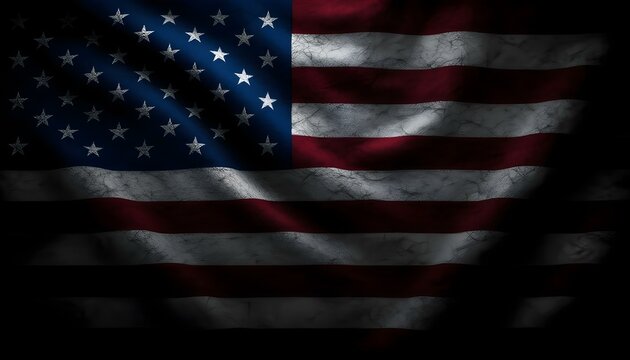 Composition of torn american flag with ripped section missing, revealing dark grey background