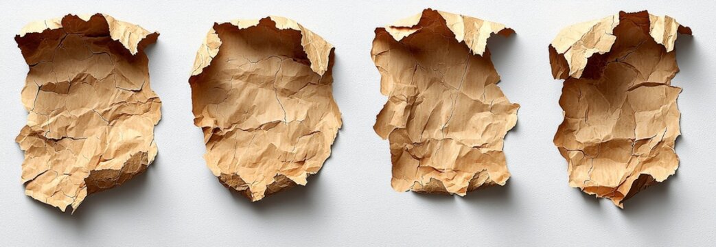 set of white folded paper sheet isolated on transparent png background,Crumpled Paper Poster Photo Effect Mockup,blank folded Paper texture overlay effec