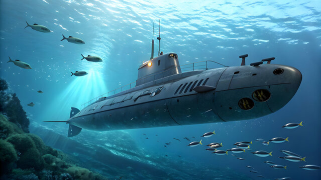Submarine exploring the ocean depths.