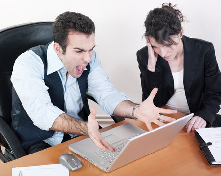 A young dark-haired man in a sporting gray sweatshirt is upset, upset and keeps his hands on his head on a black isolated background, the torturer suffers a headache