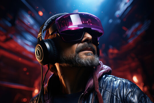 A person wearing a VR headset immersed in a virtual world, demonstrating the potential of virtual reality technology. Generative Ai.