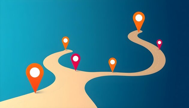 Conceptual image of a customer journey map with glowing touchpoints, optimized experience. UX, marketing funnel.