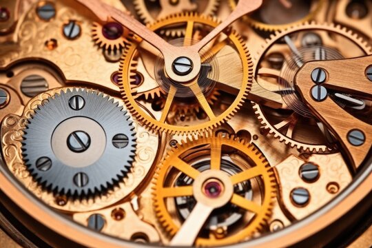 Close-up of a complex watch mechanism with intricate gears