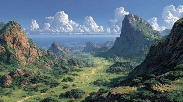 Dramatic coastal cliff landscape with rough path and ocean view