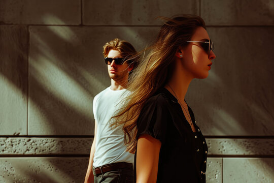 A couple having a date at an elegant restaurant sits back to back and ignores each other as they are having an argument. A lady is upset with her insensitive boyfriend. Waiting for the night to end.
