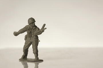 Green toy soldiers on white background. Soldier six on six models. (6/6) Picture seven on sixteen viewing angles. (07/16)