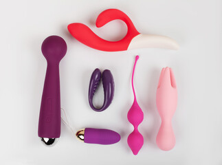 Silicone sex toys on a white background. Erotic toy for fun. Sex gadget and masturbation device..