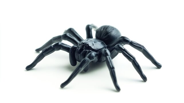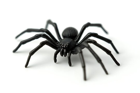 Fake rubber spider toy isolated over a white background. black spider toy isolated on a transparent background. Comic horror for Halloween.