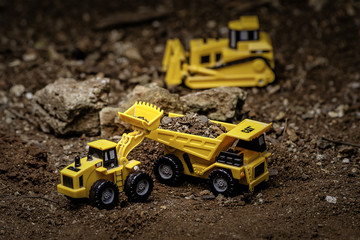 Yellow toy car on concrete surface