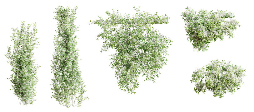 Set of Trachelospermum Jasminoides creeper plant,  vol. 2, isolated on transparent background. 3D render.