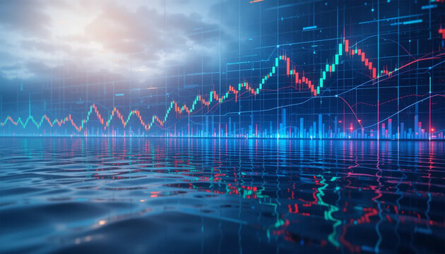Digital stock market trading chart with ascending graphics