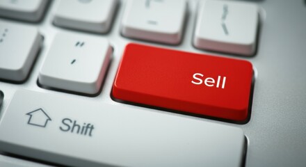 Red sell key on a computer keyboard symbolizing online commerce and trading