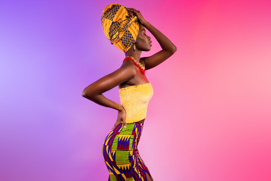 Dynamic portrait of vibrant model in studio setting