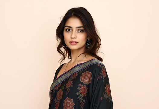 The portrait captures the beauty and elegance of an Indian woman dressed in traditional attire.