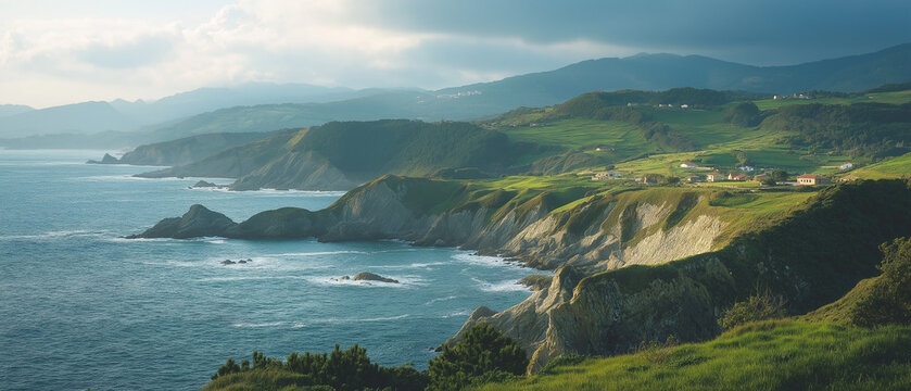 AI generator image of Summer ocean bay coastline, panorama National Seashore Breathtaking views of mountains, cliffs, and beautiful coastline.