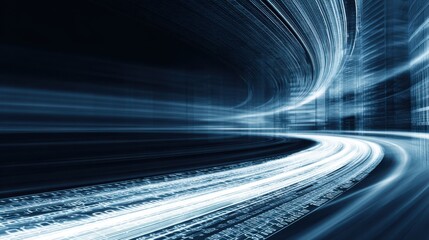 Blue light trails and digital data streams creating a sense of speed and technology image
