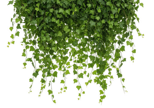 A lush green hedge of ivy with trailing vines, isolated on a transparent background