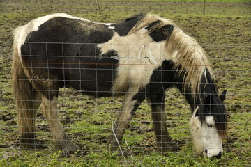 Cheval de trait broutant l'herbe à Ghislenghien (Ath)