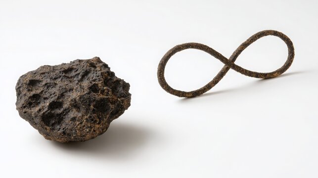 A tiny meteorite rests on an infinity symbol crafted from probability percentages.