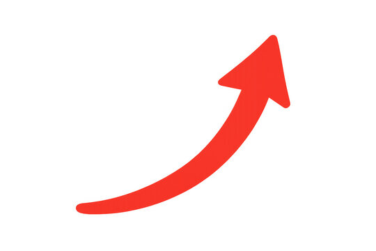 Red arrow graph shows rising then falling trend, symbolizing growth followed by decline.