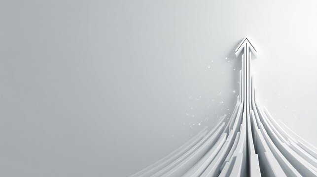 Futuristic 3d financial dashboard displaying gradient bar chart with trajectory arrow