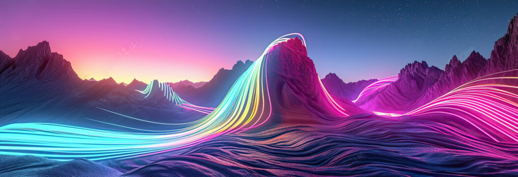 An abstract illustration showcasing a fluid, flowing pattern of interconnected lines and luminous points. The scene emanates a sense of dynamism and intricate connectivity