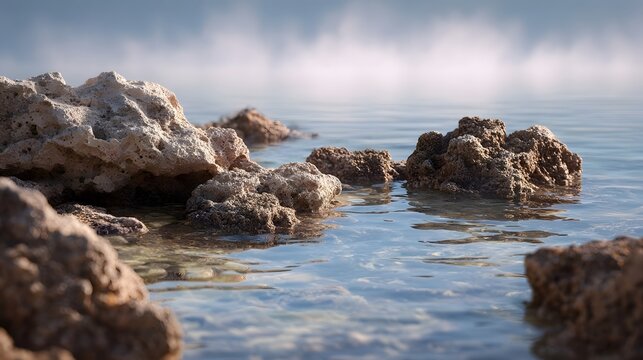 Tranquil beach with gentle waves meeting sandy shore in sunlight