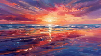 Tranquil sunrise reflecting on serene ocean waves and rocky outcrops