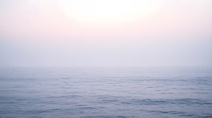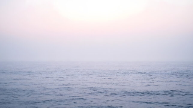 Serene seascape at dawn.  Misty, pale pink sky over calm ocean water. Minimalist, tranquil scene, perfect for peaceful backgrounds.