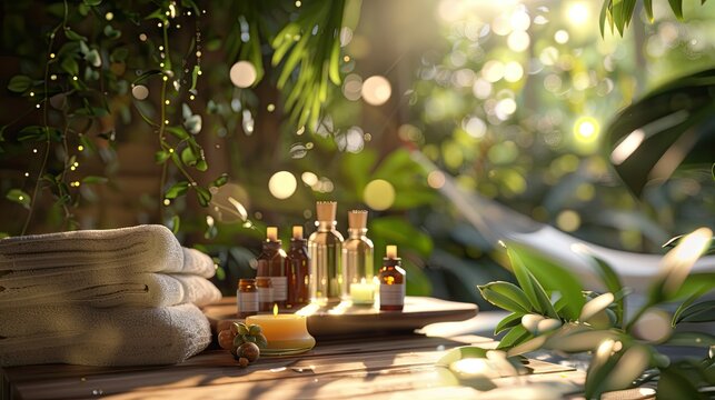 Relaxing spa setting with natural oils, fresh flowers, and calming elements for a serene experience