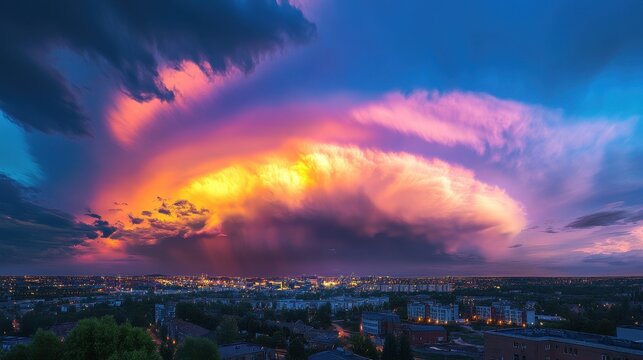 Majestic cloud formation in a vibrant sky at sunset creating a breathtaking scene of nature's wonder and beauty