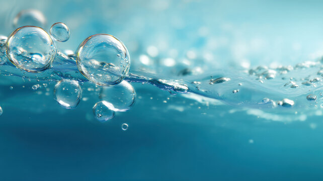 Abstract view of bubbling water with foam and bubbles in shades of blue