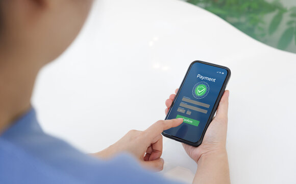 Secure Online Payment Transaction Process concept.  Businessman using smartphone to online payment, banking and online shopping.  Internet banking, fintech, Digital online payment concept.