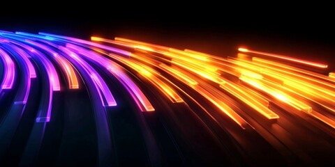 Dynamic Data Stream Visualization with Neon Lines and High-Tech Digital Network Transmission Signals